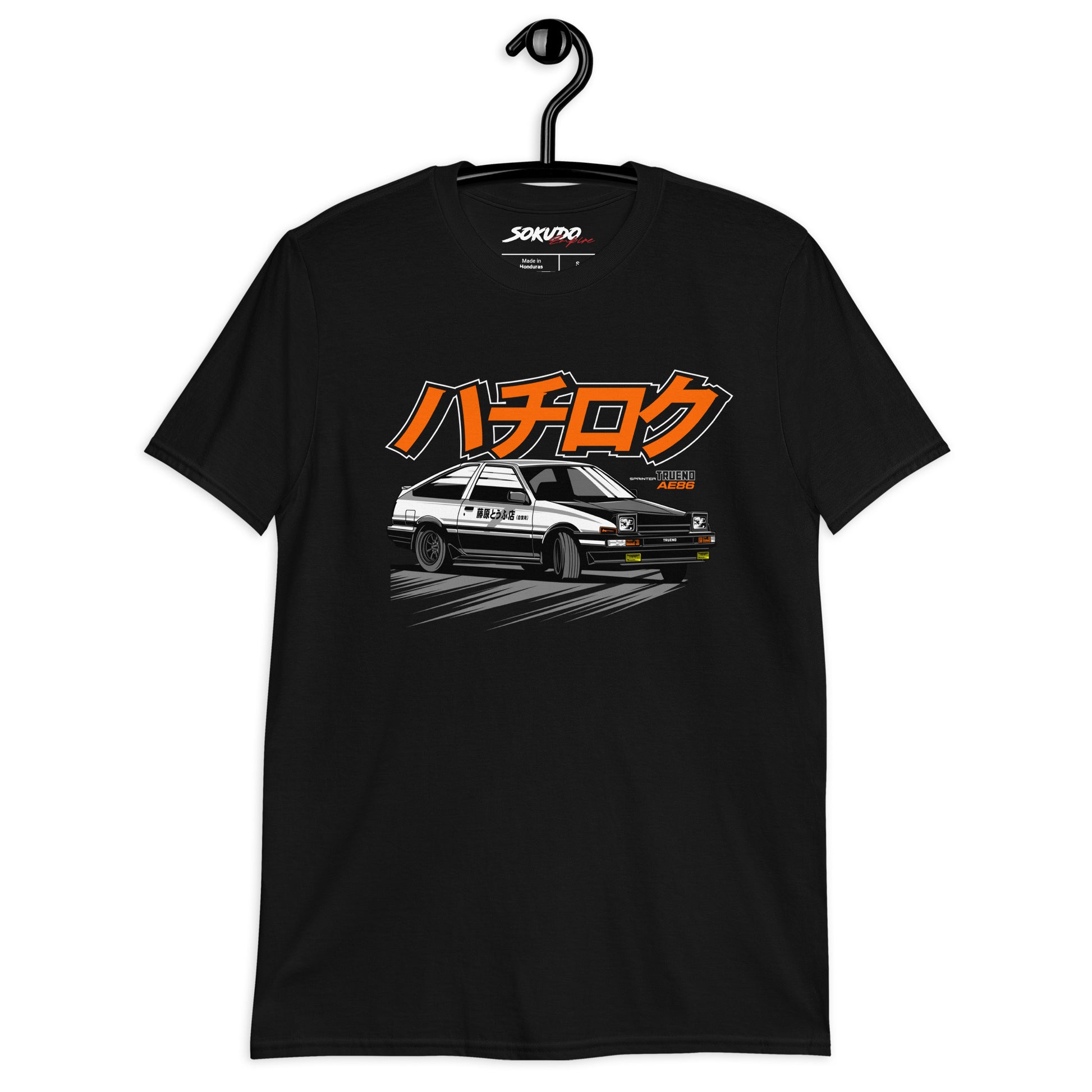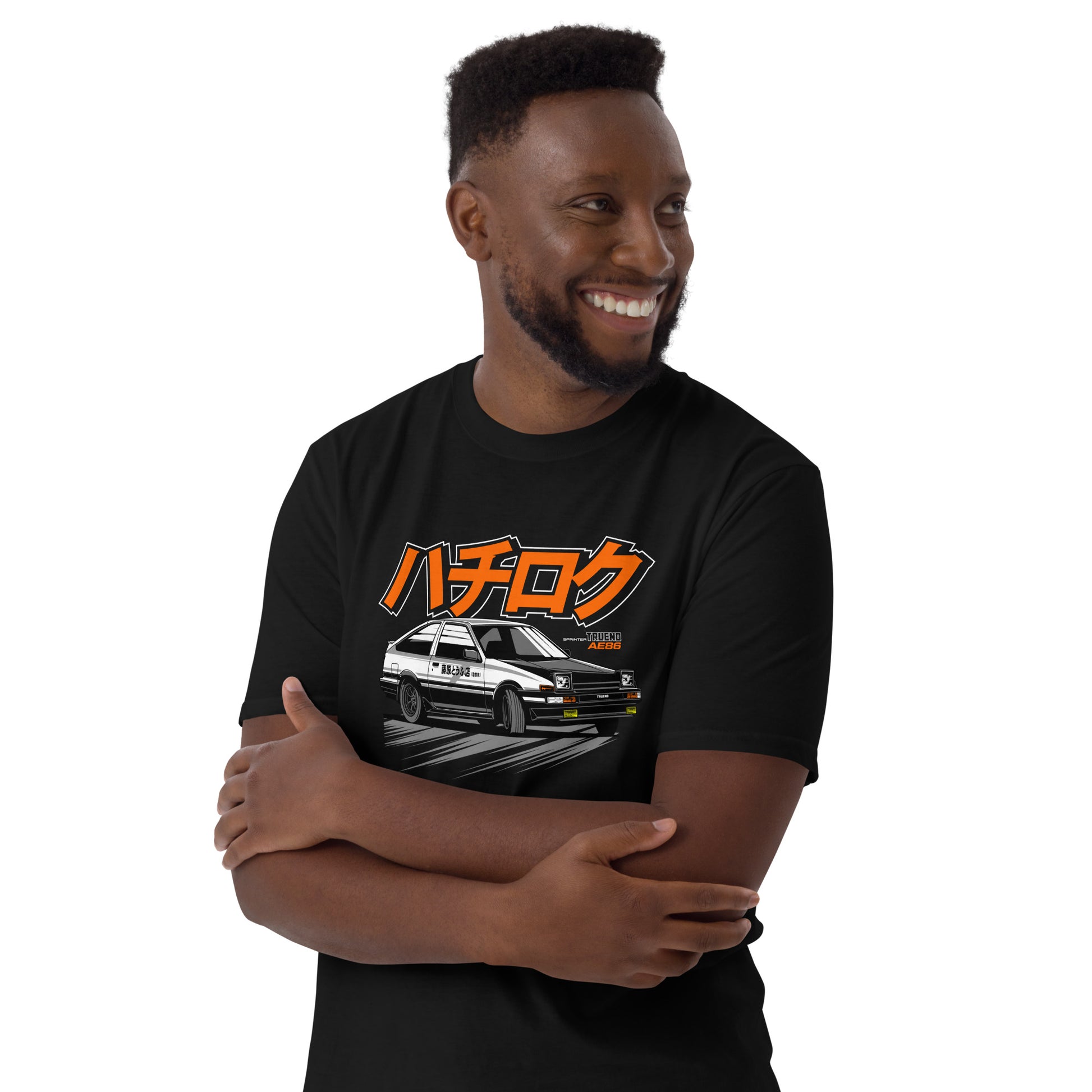 Rev up your wardrobe with this Initial D AE86 T-shirt and you'll be ready for the streets. With 100% ringspun cotton, Takumi's job as a tofu delivery boy has transformed him into a pro-level driver. Embrace your inner street racer and prove you're the best with this T-shirt!
