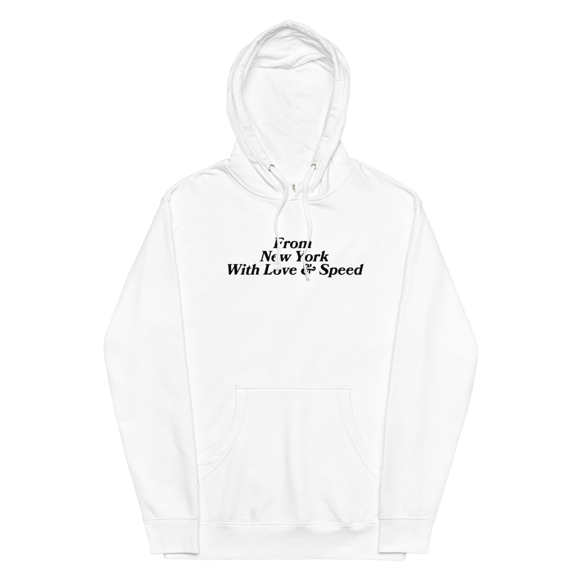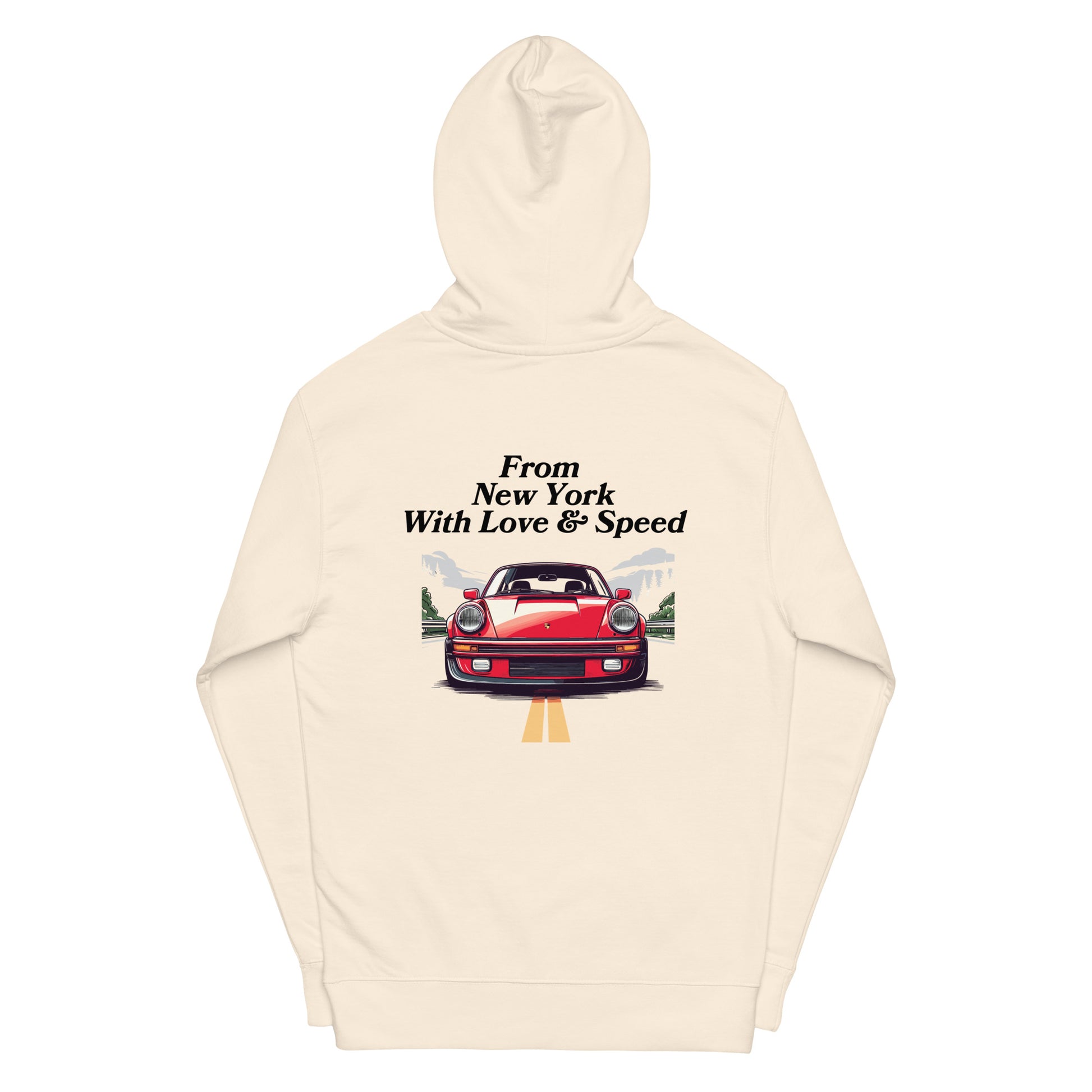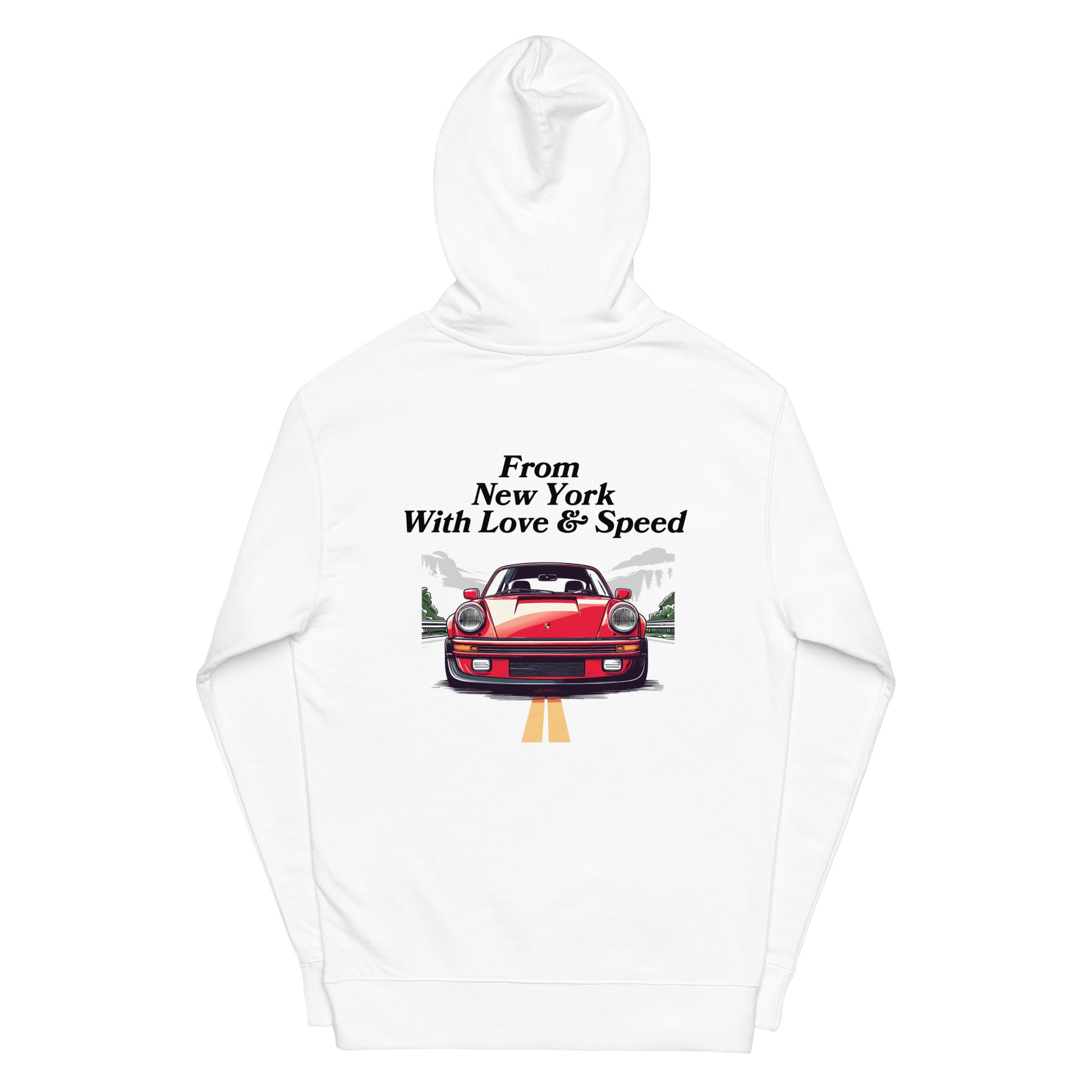 The From New York, With Love & Speed Hoodie captures the heart of the city and the mindset of movement. Inspired by street culture, automotive passion, and the energy that never sleeps, this piece blends clean design with everyday comfort. The bold back graphic delivers a statement, while the minimal front keeps it timeless and wearable.